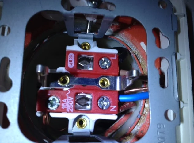 - Koble til stikkontakten: Koble kablene til stikkontakten. Følg fargekoder for riktig tilkobling (vanligvis svart til “L”, blå til “N” og gul/grønn til jord).